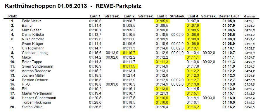 20 Teilnehmer nahmen am 1. Mai 2013 beim Frühstückskartfahren teil.Die Fotos sind aus dem Jahr 2013