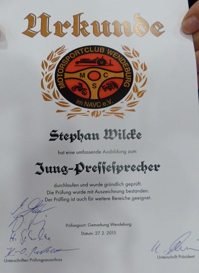 Stephan Wilcke wurde am 19.02.2011 in ein Trainingspogramm zum Assistenten des Pressesprechers, aufgenommen. Seine Ausbildungsinhalte sind u.a.:
